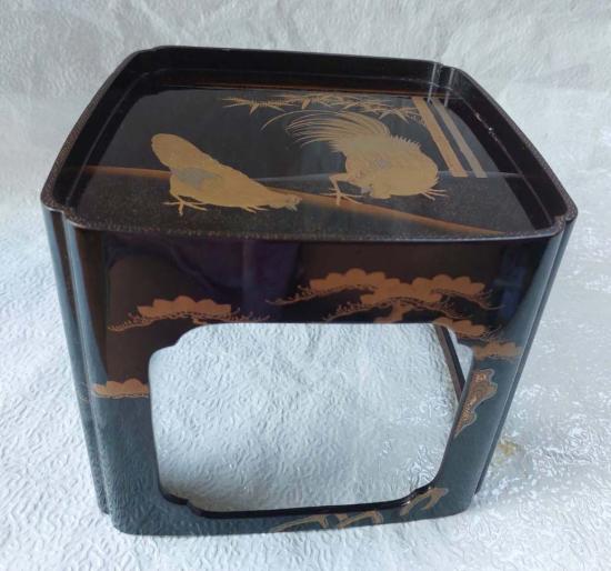 *ชุดขาตั้งไม้ญี่ปุ่นเคลือบแลคเกอร์ งานไม้พื้นดำลวดลายทองสวยงาม ขนาด 18*18 สูง 15 ซม.