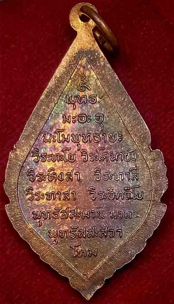 ด้านหลังของเหรียญเป็นคาถาวิระทะโย (คาถาเงินล้าน)