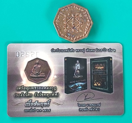 เหรียญสมนาคุณเนื้อสัมฤทธิ์ (เหรียญหล่อหลวงปู่ เดินหน อิเกสาโร รุ่นแรก เพชรยอดมงกุฎ (ระงับโศก รับโชคทุกทิศ) พร้อมบัตรรับรองหนังสือ หลวงปู่ เดินหน อิเกสาโร เล่ม 2 หมายเลข 35250
