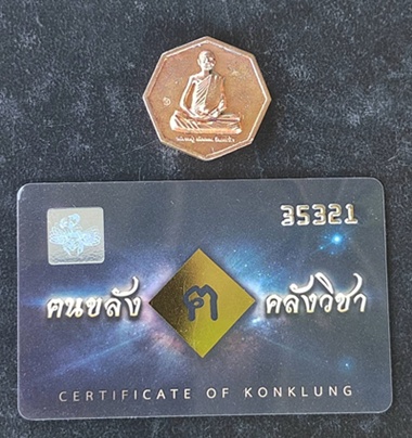 เหรียญสมนาคุณเนื้อสัมฤทธิ์ (เหรียญหล่อหลวงปู่ เดินหน อิเกสาโร รุ่นแรก เพชรยอดมงกุฎ (ระงับโศก รับโชคทุกทิศ) พร้อมบัตรรับรองหนังสือ หลวงปู่ เดินหน อิเกสาโร เล่ม 2 หมายเลข 35321 |
