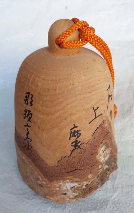 ระฆังนำโชคไม้เบิร์ช ทำเป็นเครื่องรางนำโชค งานฝีมือแบบญี่ปุ่นดั้งเดิม ขนาดกว้าง 5 นิ้ว สูง 7 นิ้ว