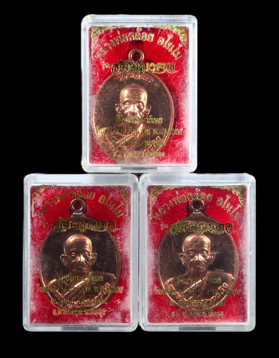 3องค์ เหรียญห่วงเชื่อมเจริญพร รุ่นแรก หลวงพ่อคล้อย วัดภูเขาทอง เนื้อทองสัตตองค์ทองชมภู รุ่นสัตตมงคล