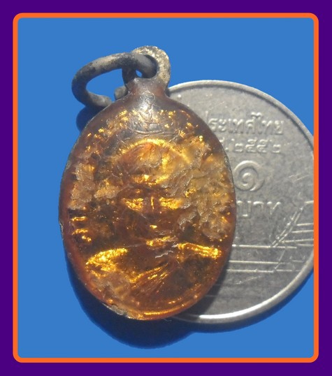 ของแท้ ดูง่าย-100-เหรียญเม็ดแตงเคลือบเรซิ่น พศ. 2522 กะไหล่ทองลงยาสีเขียว หลวงพ่อทวด วัดช้างให้ |