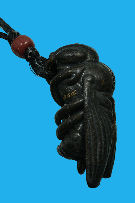 พญาแมลงภู่คำ ลักษณะ เนื้อชนวนรมดำ เพศ ตัวเมีย ขาทะลุ ผู้สร้าง/ปลุกเสก สล่าปะอ่อง จองคำ แหล่งที่มา แม่ฮ่องสอน ปีที่จัดสร้าง พ.ศ. ๒๕๖๒ (ปี 2562)