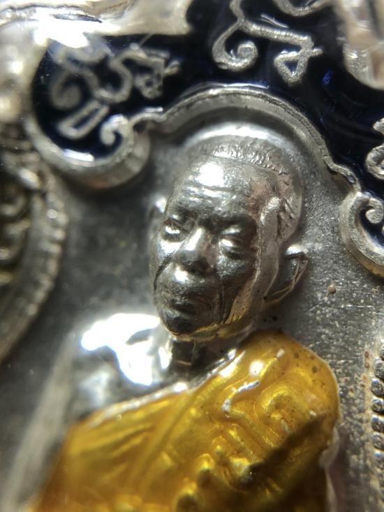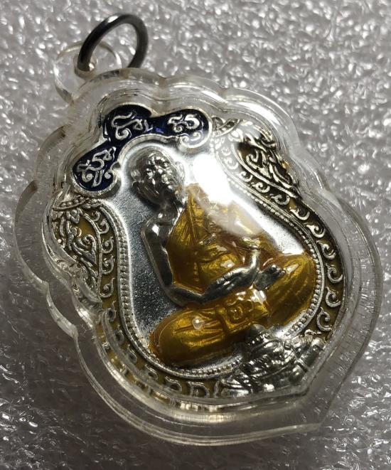รายละเอียด เหรียญเสมาเจ็ดรอบ หลวงปู่บัว ถามโก วัดศรีบุรพาราม จ.ตราด เนื้อเงินลงยาจีวร หมายเลข ๒๑๒