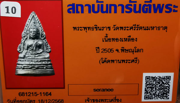 พระพุทธชินราช วัดพระศรีรัตนฯ เนื้อทองเหลือง(โค๊ตก้นพานพระศรี) ปี2505 จ.พิษณุโลก + บัตร G-pra สภาพสวยเดิมค่ะ |