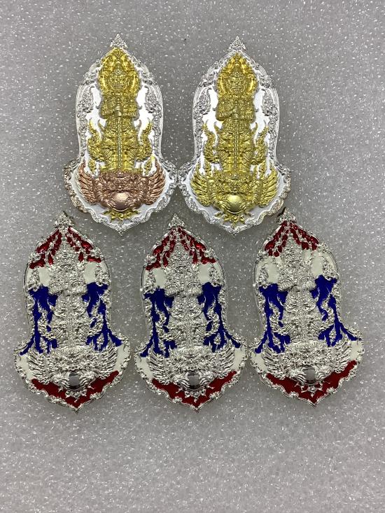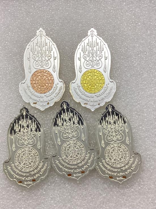 เนื้อสัมฤทธิ์ชุบเงินลงยาธงชาติ 3 เหรียญ , สัมฤทธิ์ชุบ 2 กษัตริย์ 1เหรียญ ,สัมฤทธิ์ชุบ 3 กษัตริย์ 1 เหรียญ