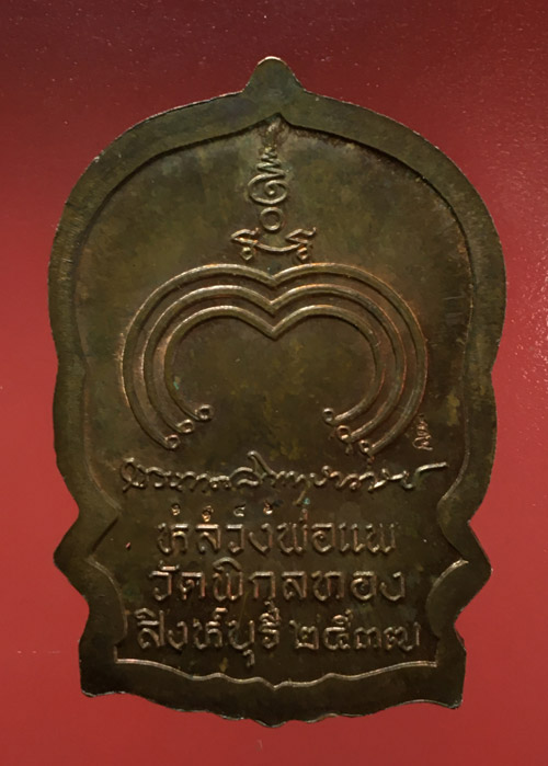 เหรียญนั่งพาน หลวงพ่อแพ วัดพิกุลทอง เนื้อนวะ ปี 2537 จ.สิงห์บุรี