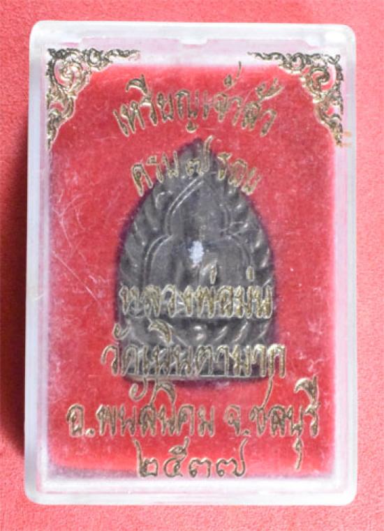 วัดใจ 150 บาท / เหรียญเจ้าสัว ครบ ๗ รอบ หลวงพ่อม่น วัดเนินตามาก จ.ชลบุรี เนื้อนวะโลหะปี 2537 พร้อมกล่อง