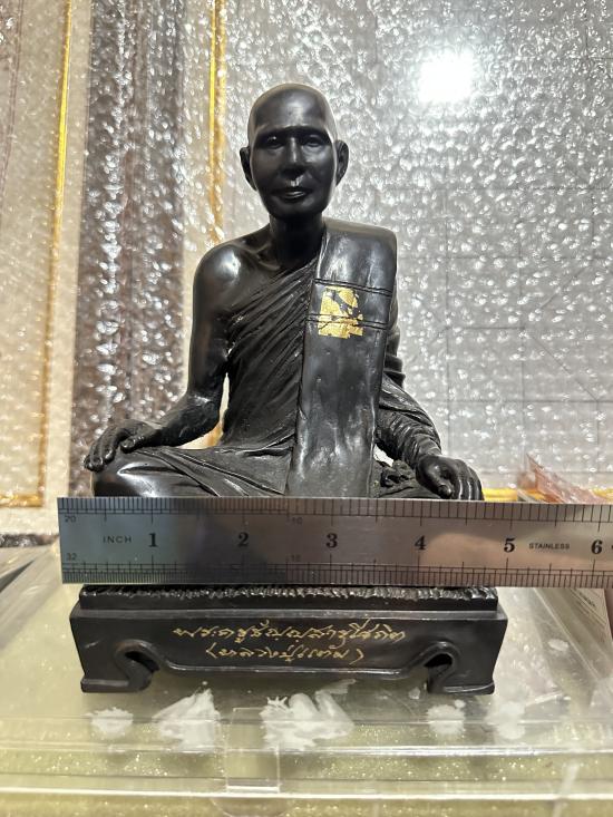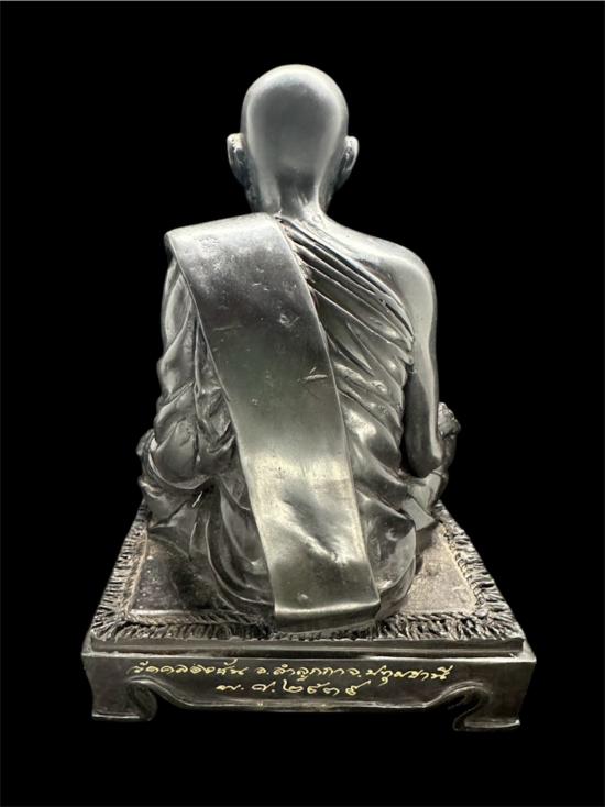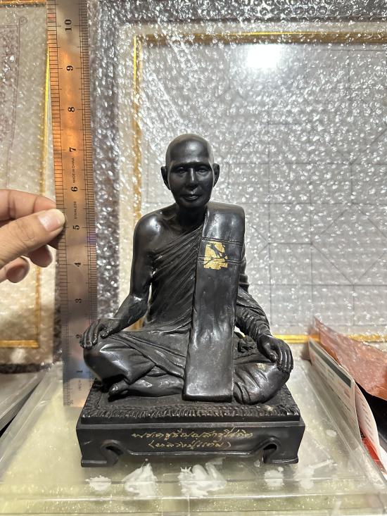 พระบูชา พระครูธัญญสารโศภิต (หลวงปู่แต้ม) วัดคลองชัน จ.ปทุมธานี ปี 2539 เนื้อทองเหลืองรมดำมันปู ขนาดหน้าตัก 5 นิ้ว สูงรวมฐาน 7 นิ้ว |