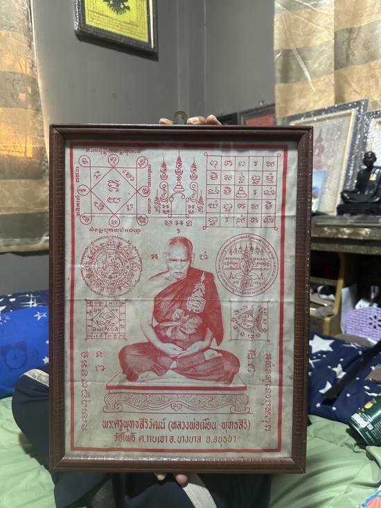 ผ้ายันต์รุ่นแรก หลวงพ่อเมี้ยน วัดโพธิ์กบเจา ใส่กรอบเก่า |