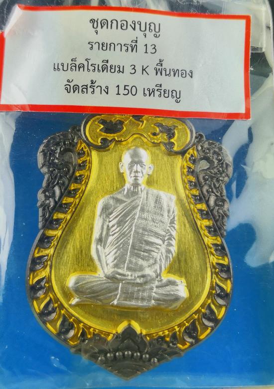 2200-เคาะเดียว เหรียญเสมาอุดมทรัพย์ พระอาจารย์ต้อม วัดท่าสะแบง ชุดกองบุญ เนื้อแบล็กโรเดียม 3k พื้นทอง เลข๓๓ เสมาใหญ่พิมพ์นิยม