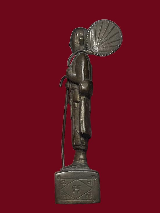 พระสีวลี หลวงพ่อแฉ่ง วัดบางพัง พิมพ์ฐานเหลี่ยม เนื้อทองเหลือง ปี2495 จ.นนทบุรี (ขนาดสูง3.6นิ้ว) +บัตรรับรอง สวยๆเดิมๆ