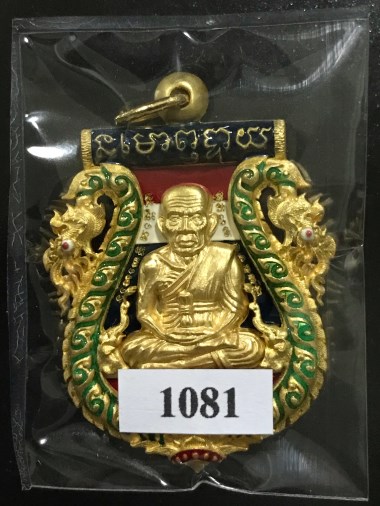 "วัดใจ" เหรียญเสมาฉลุยกองค์หลวงพ่อทวด(พิมพ์หน้าเลื่อน)หลังพ่อท่านเขียว ฝังตะกรุดทองคำยันต์รับทรัพย์ "รุ่น กิตติคุโณมหามงคล" เนื้อบรอนซ์ชุบทอง ลงยาซุ้มพญานาคฉากสีธงชาติ สภาพสวยพร้อมกล่องเดิม หมายเลข 1081
