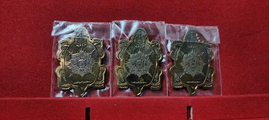 แบ่งปัน เหรียญพญาเต่าเรือน รุ่น โคตรเศรษฐี หลวงปู่จื่อ พนฺธมุตโต วัดเขาตาเงาะอุดมพร จ.ชัยภูมิ รายการเนื้อทองแดงมันปูไม่ตัดปีกลงยาลายธงชาติหน้ากากทองทิพย์ลงยาจีวร หมายเลข 374/394/398 ชุด 3 องค์ แท้ทันป
