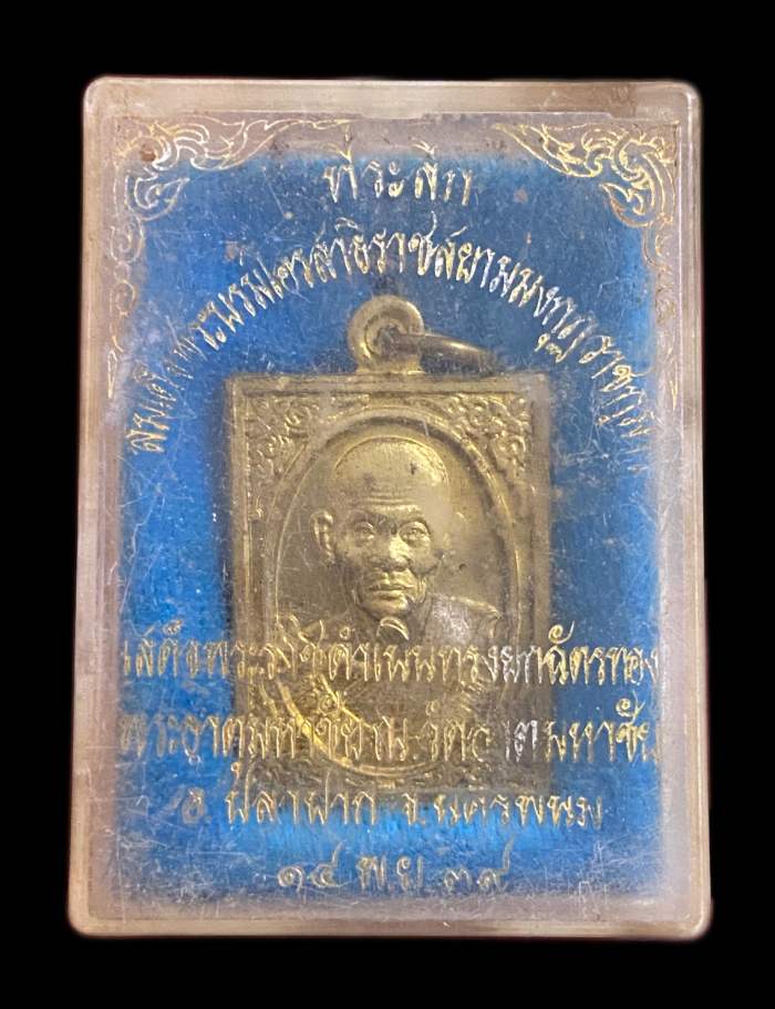 เหรียญ หลวงปู่คำพันธ์ วัดธาตุมหาชัย จ.นครพนม ที่ระลึก สมเด็จพระบรมโอรสาธิราชฯ เสด็จพระราชดำเนินทรงยกฉัตรทอง เนื้อทองแดงกะไหล่ทอง ปี 2539