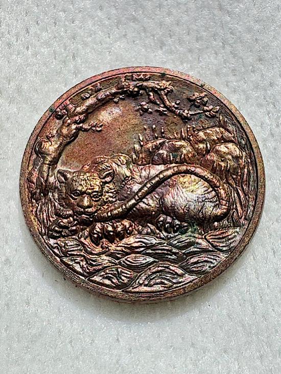 พญาเสือเฒ่า พยัคฆ์คาบหาง พระอาจารย์ประสูติ ปิยฝาโม วัดในเตา จ.ตรัง รุ่นเสาร์ 5 เนื้อทองแดงแช่น้ำมันเสือนอนกิน ปี60 เลข24 |