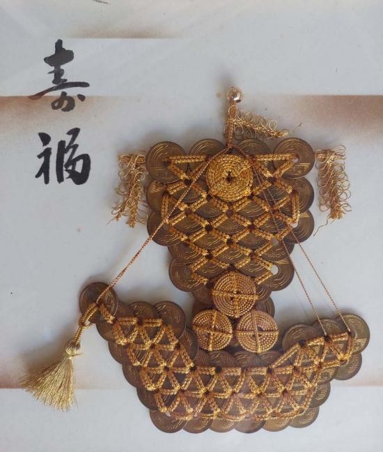 ***วัดใจ***เหรียญ 5 เยน ทำเป็นเครื่องรางนำโชค งานฝีมือแบบญี่ปุ่นดั้งเดิม โดยจัดเรียงเป็นรูปเรือใบ เพื่อความเป็นสิริมงคล