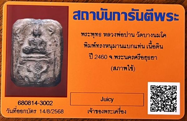 พระหลวงพ่อปาน วัดบางนมโค จ.อยุธยา พิมพ์หนุมานแบกแท่น ปี 2460
