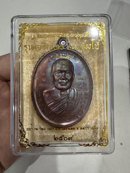 หลวงพ่อทอง วัดบ้านไร่ เหรียญเจริญพร69 พิมพ์จัมโบ้ เนื้อทองแดงเถื่อน no.396 มีกล่อง องค์ใหญ่ สวยงาม