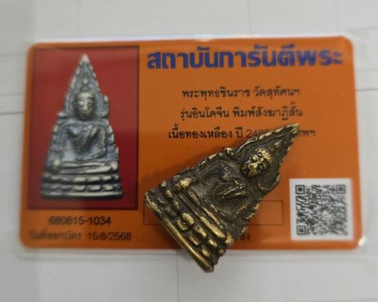 เคาะเดียว พระพุทธชินราช วัดสุทัศนฯ รุ่น อินโดจีนปี สังฆาฏิสั้น เนื้อทองเหลือง ปี 2485 ไม่ตอกโค๊ด พร้อมบัตรรับรอง G-Pra รับประกันตามกฏ