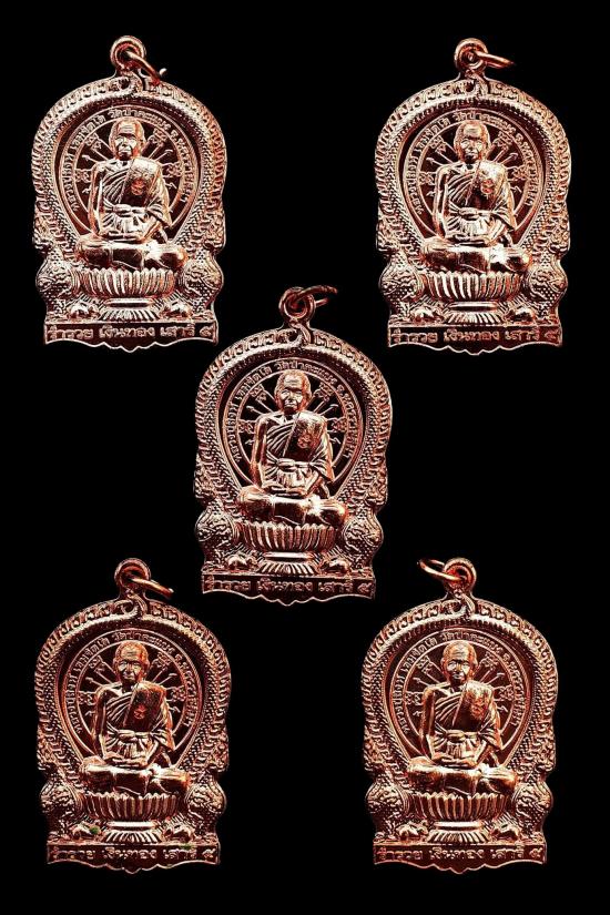 ชุด 5 องค์...เหรียญนั่งพานเสาร์ห้ามหาบารมี รุ่นแรก เนื้อทองแดง ปี 2554 หลวงปู่สิงห์ วัดบ้านป่าตะแบง จ.นครราชสีมา พร้อมซองรูปใบฝอยเดิมจากวัด