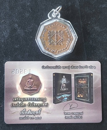 เหรียญสมนาคุณเนื้อสัมฤทธิ์ (เหรียญหล่อหลวงปู่ เดินหน อิเกสาโร รุ่นแรก เพชรยอดมงกุฎ (ระงับโศก รับโชคทุกทิศ) พร้อมบัตรรับรองหนังสือ หลวงปู่ เดินหน อิเกสาโร เล่ม 2 หมายเลข 135506 เลี่ยมกันน้ำ |