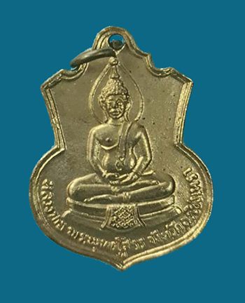 เหรียญพระพุทธโสธร วัดโสธทฯ รุ่นสร้างโรงเรียน พิมพ์ฐานเรียบหลัง ภปร. เนื้อทองแดงกะไหล่ทองปี 2509 สวยเดิมพร้อมบัตร