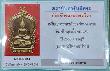 เหรียญพระพุทธโสธร วัดมหาธาตุ พิมพ์ใหญ่ เนื้อทองแดง ปี 2505 ชลบุรี พร้อมบัตรรับรอง