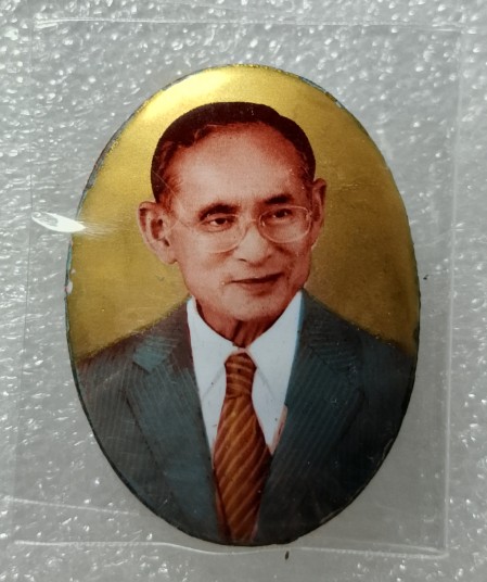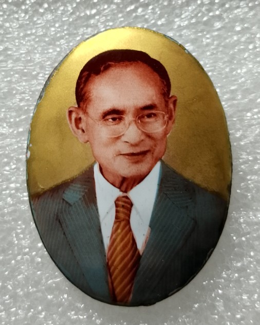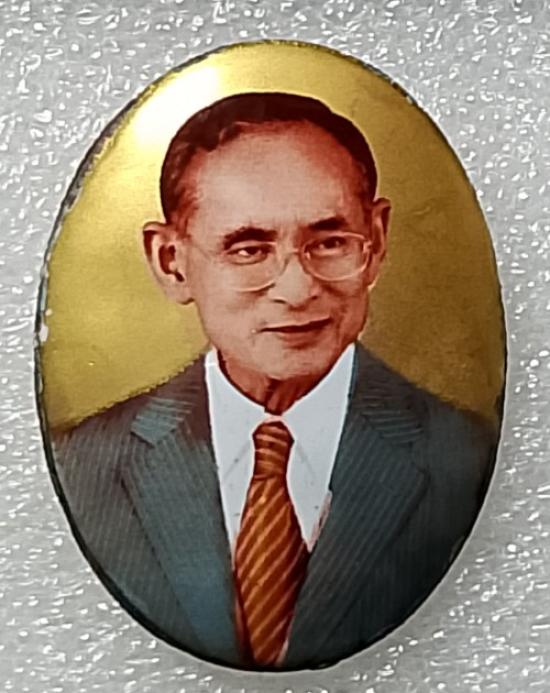 ด้านหน้าเป็นพระบรมรูปในหลวงรัชกาลที่ 9 ทรงสูทแบบสากล, ด้านหลังปิดด้วยแผ่นทองคำ เงิน หรือโลหะ และบรรจุมวลสารมหามงคล