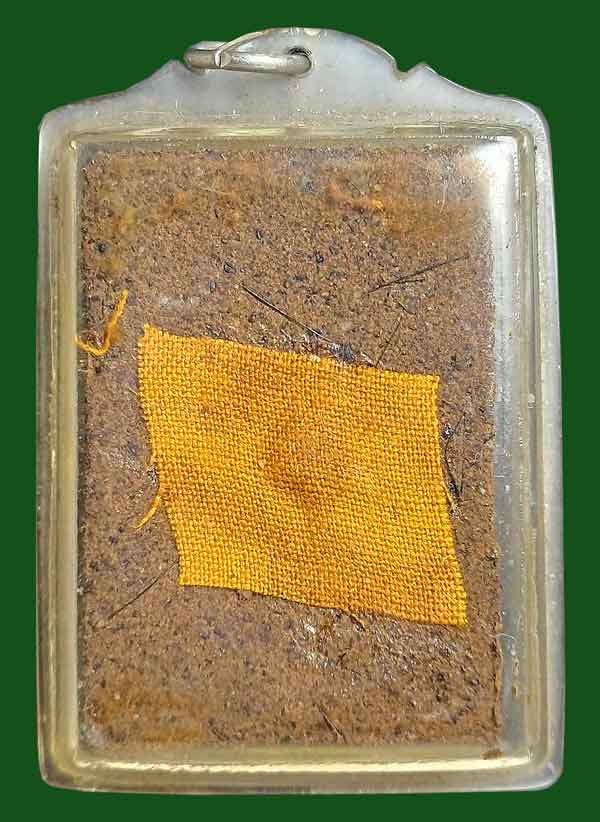 รูปถ่ายกระดาษหนังไก่ ขนาด 2.5 x 3.5 ซ.ม. ด้านหลังบรรจุผง เกศา จีวร เลื่ยมเดิม เก่าไม่ทราบเกจิ |