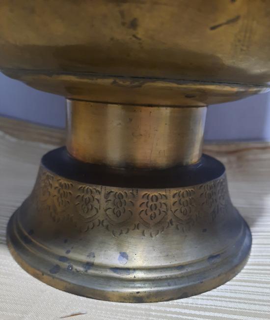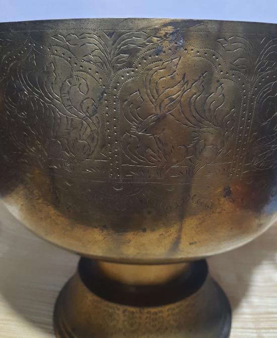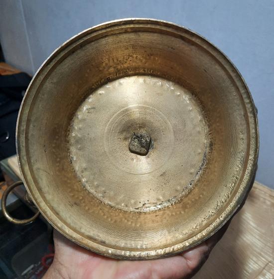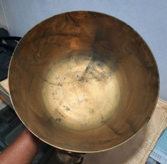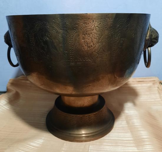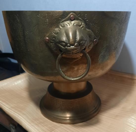 ขันทองเหลืองหูสิงห์งานเก่า ปากขันกว้าง 10 นิ้ว สูง 8.5 นิ้ว สภาพสวย