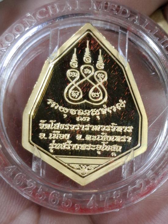 เหรียญหลวงพ่อพระพุทธโสธร ฉัตรแปดเหลี่ยม รุ่น สร้างพระอุโบสถ เนื้อทองแดงนอก ขัดเงาพ่นทรายเคลือบทอง ตอกโค้ดและหมายเลข |