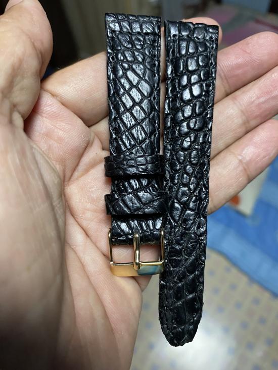 สายนาฬิกาหนังจระเข้แท้ใหม่มือ1 บัคเคิลสีทอง ขนาด20มิล |