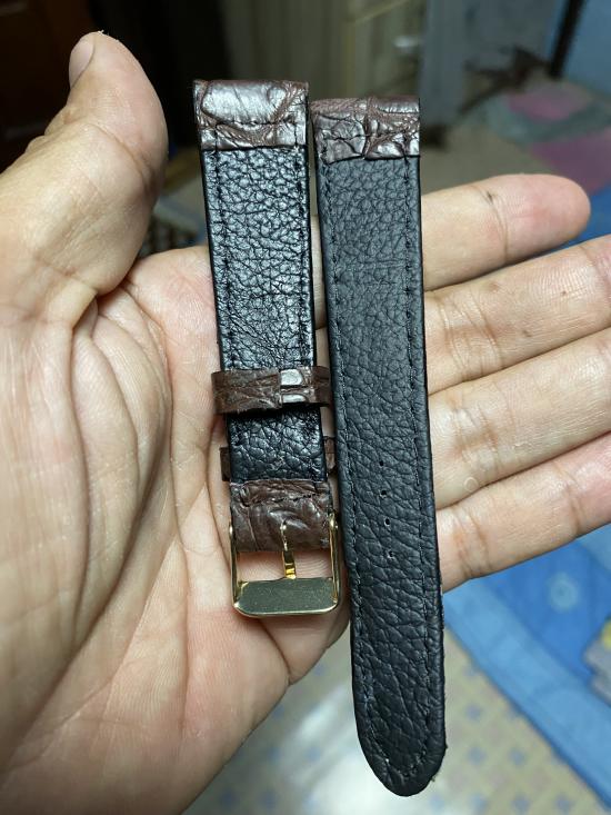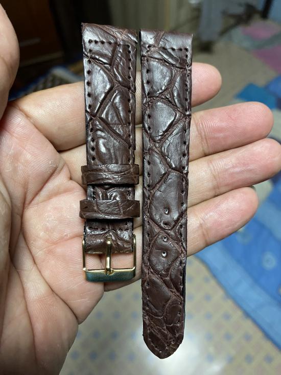 สายนาฬิกาหนังจระเข้แท้ใหม่มือ1 บัคเคิลสีทอง ขนาด20 มิล |