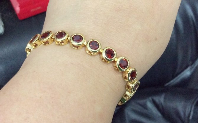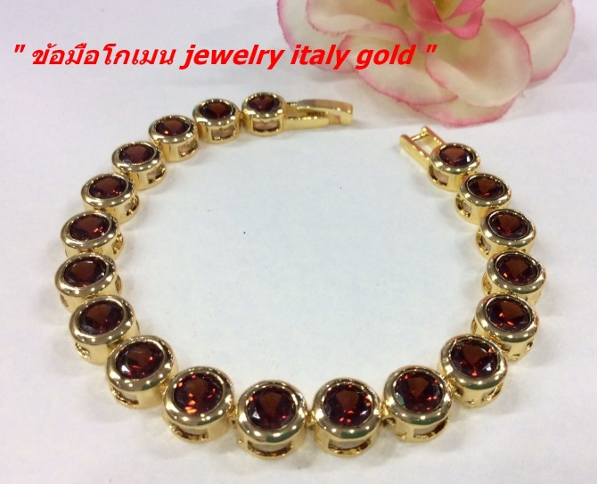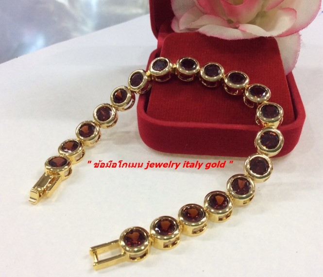 **ปีใหม่-เทขาดทุน**กำไลข้อมือโกเมนยาว 7.นิ้ว งานจิวเวลลี่ชุบทองแท้ เสริมความปัง ความรวย