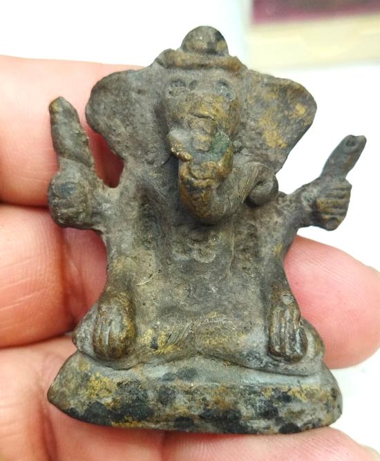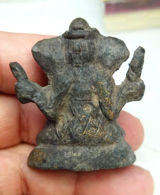 พระพิฆเนศศิลปะล้านนา (ปิ๊ดสะหนู) เนื้อโลหะ หล่อโบราณยุคล้านนาก้นดินไทยสภาพผิวหิ้ง....