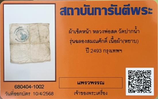 ผ้าเช็ดหน้าแจกงานเลื่อนสมถศักดิ์ปี2493ของหลวงพ่อสดวัดปากน้ำ.สภาพสวยเดิมๆสมบูรณ์ดีไม่ฉีกไม่ขาดแบบนี้หายากมากคะ