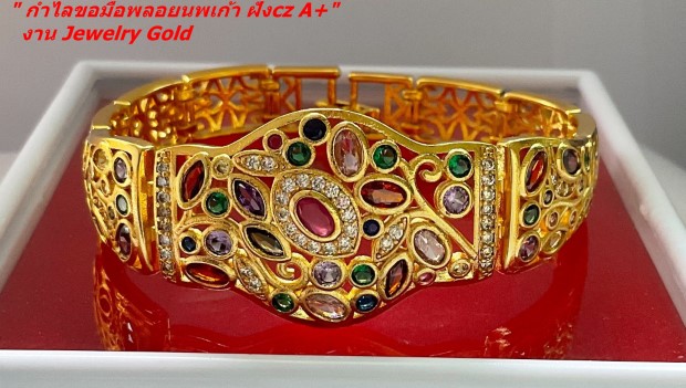 **ปีใหม่-เทขาดทุน**กำไลแขนพลอยนพเก้ายาว 7.นิ้ว งานจิวเวลลี่ชุบทองแท้ งานปราณีตเสริมความปัง ความรวย ความสำเร็จ อายุยืนยาว
