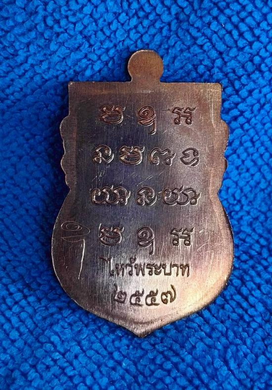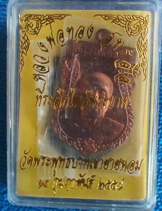 เสมาไหว้พระบาท หลวงพ่อทอง สุทธสีโล วัดพระพุทธบาทเขายายหอม เนื้อทองแดง **๓๒๗๒* มีจารหน้า/หลัง ปี 2557