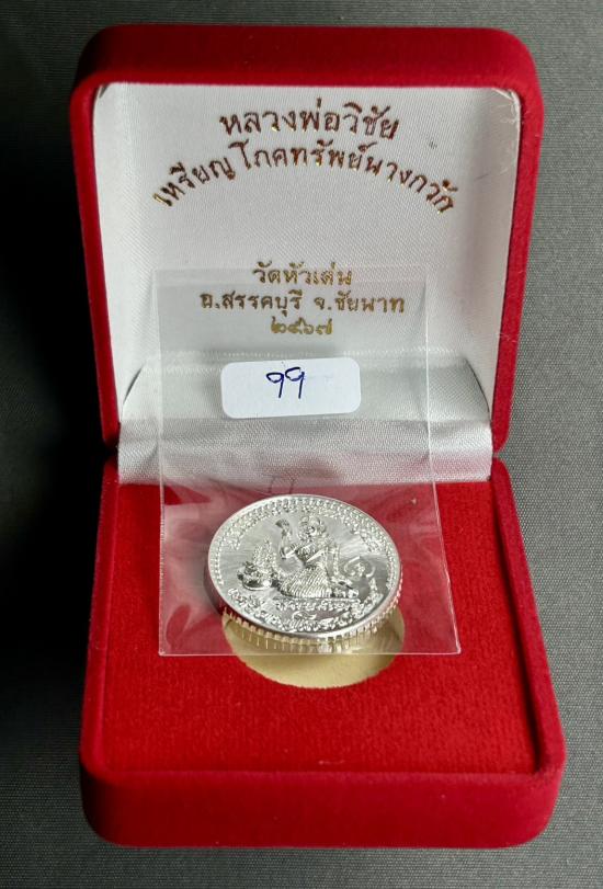 เหรียญโภคทรัพย์ "นางกวักหลังหนุมาน" หลวงพ่อวิชัย วัดหัวเด่น "เนื้อเงิน" หมายเลขมหามงคล "99"