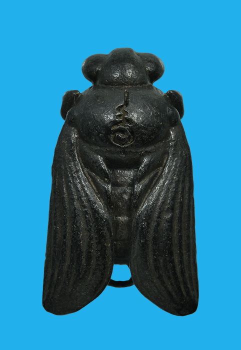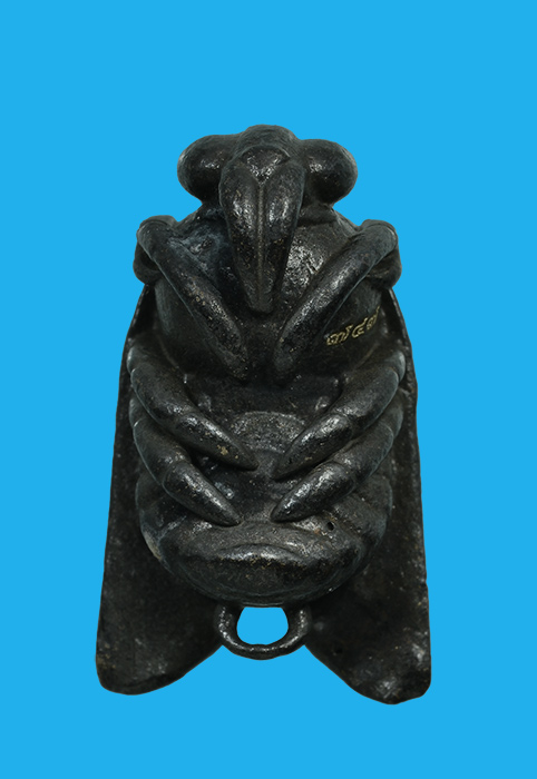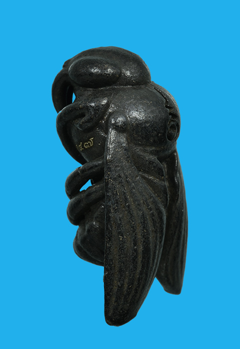 พญาแมลงภู่คำ ลักษณะ เนื้อชนวนรมดำ เพศ ตัวเมีย ขาทะลุ ปลุกเสก สล่าปะอ่อง จองคำ แหล่งที่มา แม่ฮ่องสอน ปีที่จัดสร้าง พ.ศ. ๒๕๖๒ (ปี 2562)