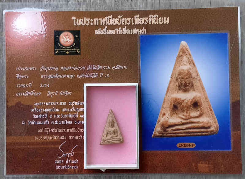 วัดใจ.. ราคาทุนนางพญาหลังอิติหลวงพ่อกวยปี15เนื้อดินผสมผงมาพร้อใบประกาผศเคาะเดียวแดงครับ