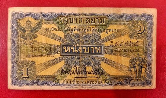 ธนาบัตไถนา ราคา 1 บาท รุ่น 2 สมัยรัชกาลที่7 (ร.7)พ.ศ 2475