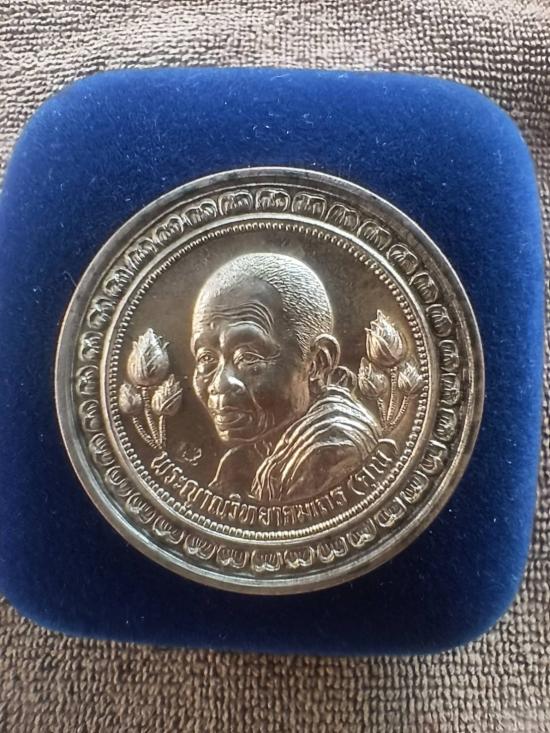 เหรียญรูปเหมือนดอกบัวข้าง เนื้อนวะ หลวงพ่อคูณ ปริสุทฺโธ วัดบ้านไร่ จ.นครราชสีมา จัดสร้างปี พ.ศ.2537 เลข ๖๖๓ ตลับเดิม |