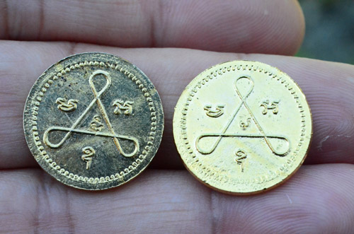 100 ส่งด่วน*เหรียญกลมเล็กหลวงพ่อเปิ่น วัดกลางบางพระ จ.นครปฐม หลังยันต์ใบพัด ตอกโค้ด เนื้อกะไหล่ทอง 2 เหรียญครับ