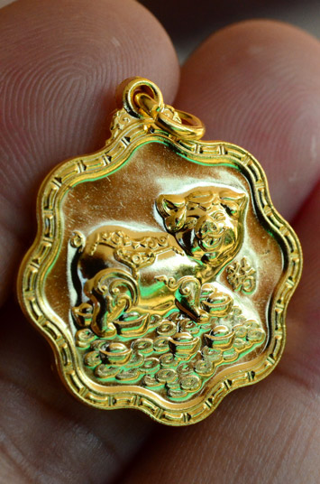 ชื่อพระเครื่อง 100 ส่งด่วน* เหรียญหมูนำโชค ด้านหลังเสือ วัดมังกรกมลาวาส(เล่งเน่ยยี่) กรุงเทพปีพ.ศ.2562 เนื้อกะไหล่ทอง สวยครับ