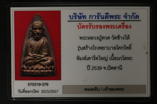 พระหลวงปู่ทวด วัดช้างให้ รุ่นสร้างโรงพยาบาลโคกโพธิ์ พิมพ์เตารีดใหญ่ เนื้อนวโลหะ ปี 2539 จ.ปัตตานี