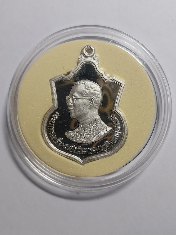 เหรียญเสมาที่ระลึก ในหลวงรัชกาลที่ 9 เนื่องในโอกาสเฉลิมพระชนมพรรษ 80 พรรษา 5 ธ.ค.2550 เนื้อเงินขัดเงา เหรียญพร้อมแหนบ กล่องเดิมครบชุด กระทรวงมหาดไทยจัดสร้าง