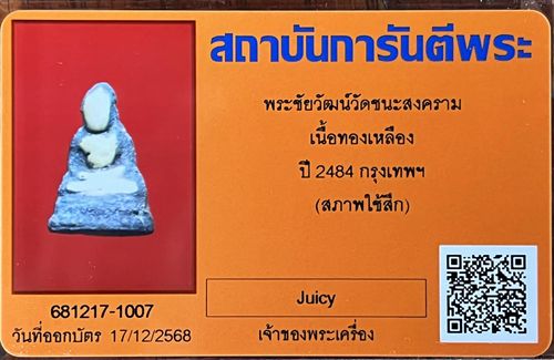 เคาะเดียวพระชัยวัฒน์ วัดชนะสงคราม เนื้อทองเหลือง ปี 2484 (ลพ. จาด ลพ.จง ลพ.คง ลพ.อี๋ ลพ.เหลือ ลพ.ขัน ลป.เผือก ปลุกเสก)